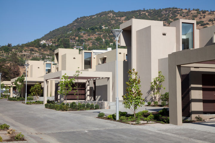 El Condominio El Tranque es un proyecto residencial compuesto por 17 casas distribuidas en dos tipologías de gran superficie —426 m² y 429 m²—, emplazado sobre un terreno con una leve pendiente en la comuna de Lo Barnechea. Esta condición geográfica permitió desarrollar un conjunto de viviendas plenamente abiertas hacia el oriente y el norte, maximizando el acceso a la luz natural y las vistas.